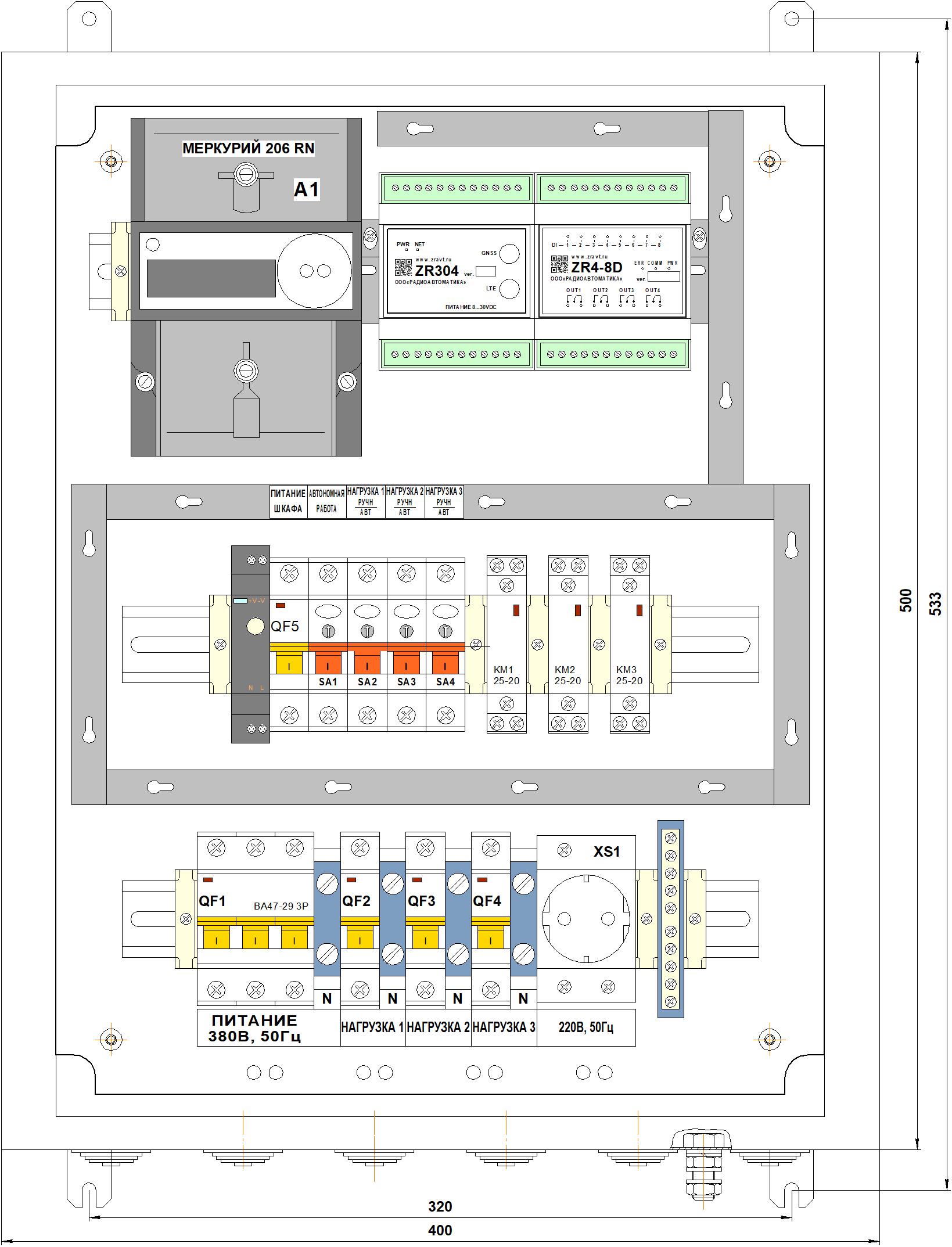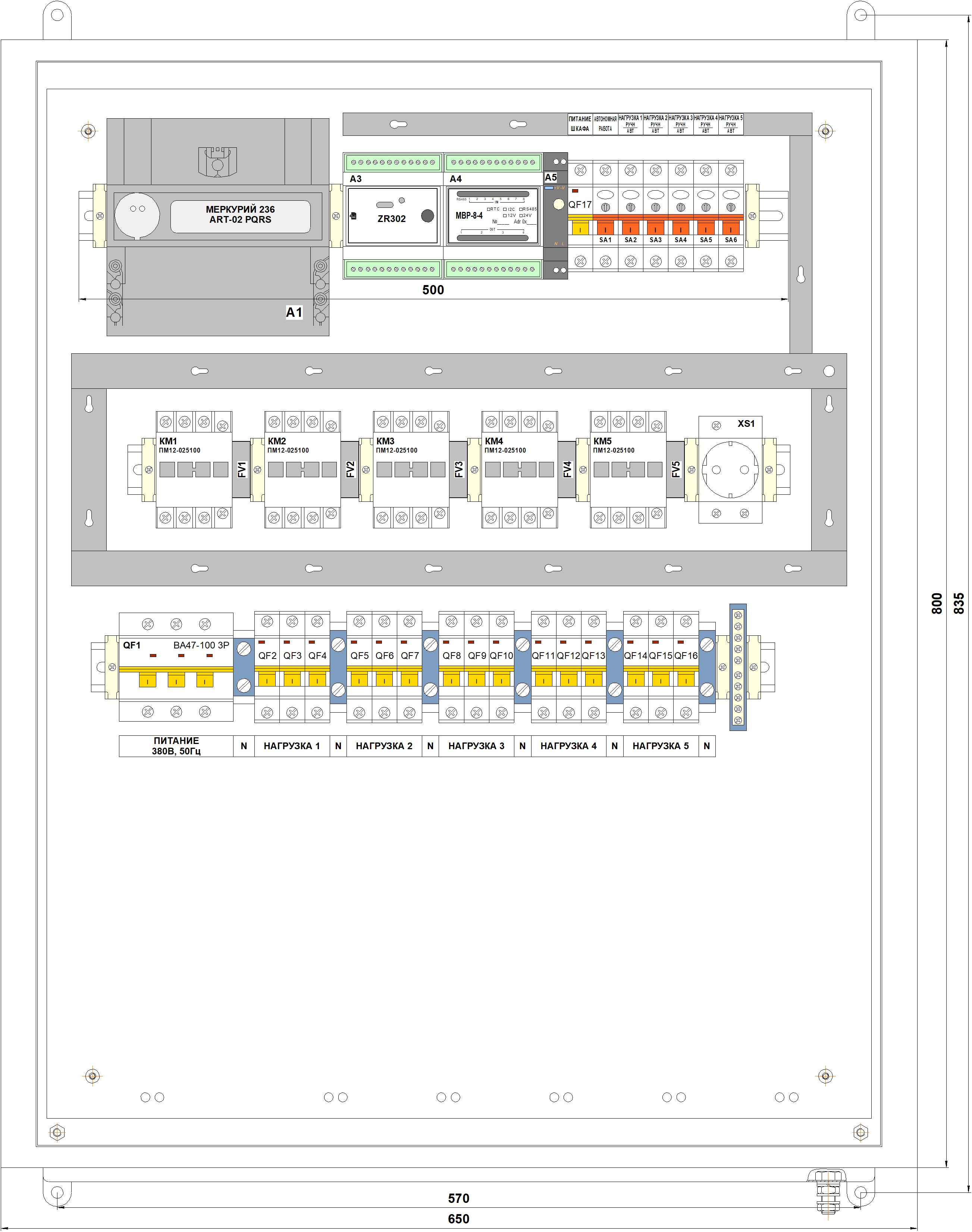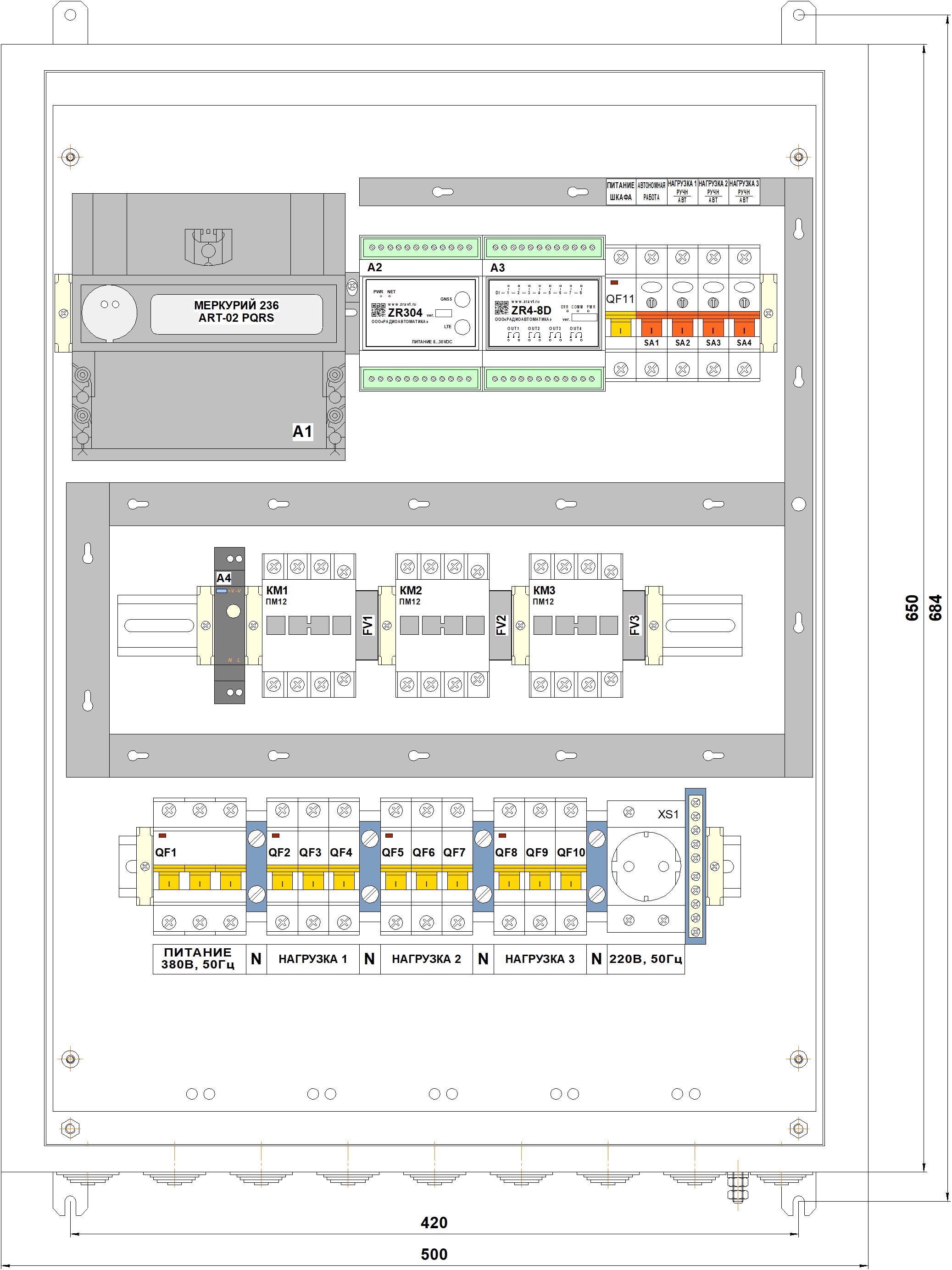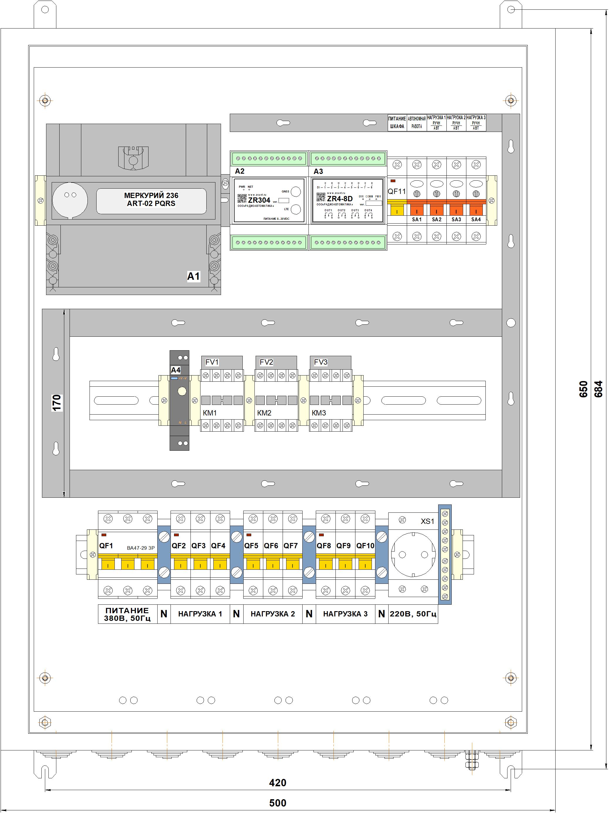 Трехфазные шкафы СПЕКТР (питание ~380В, 50Гц)