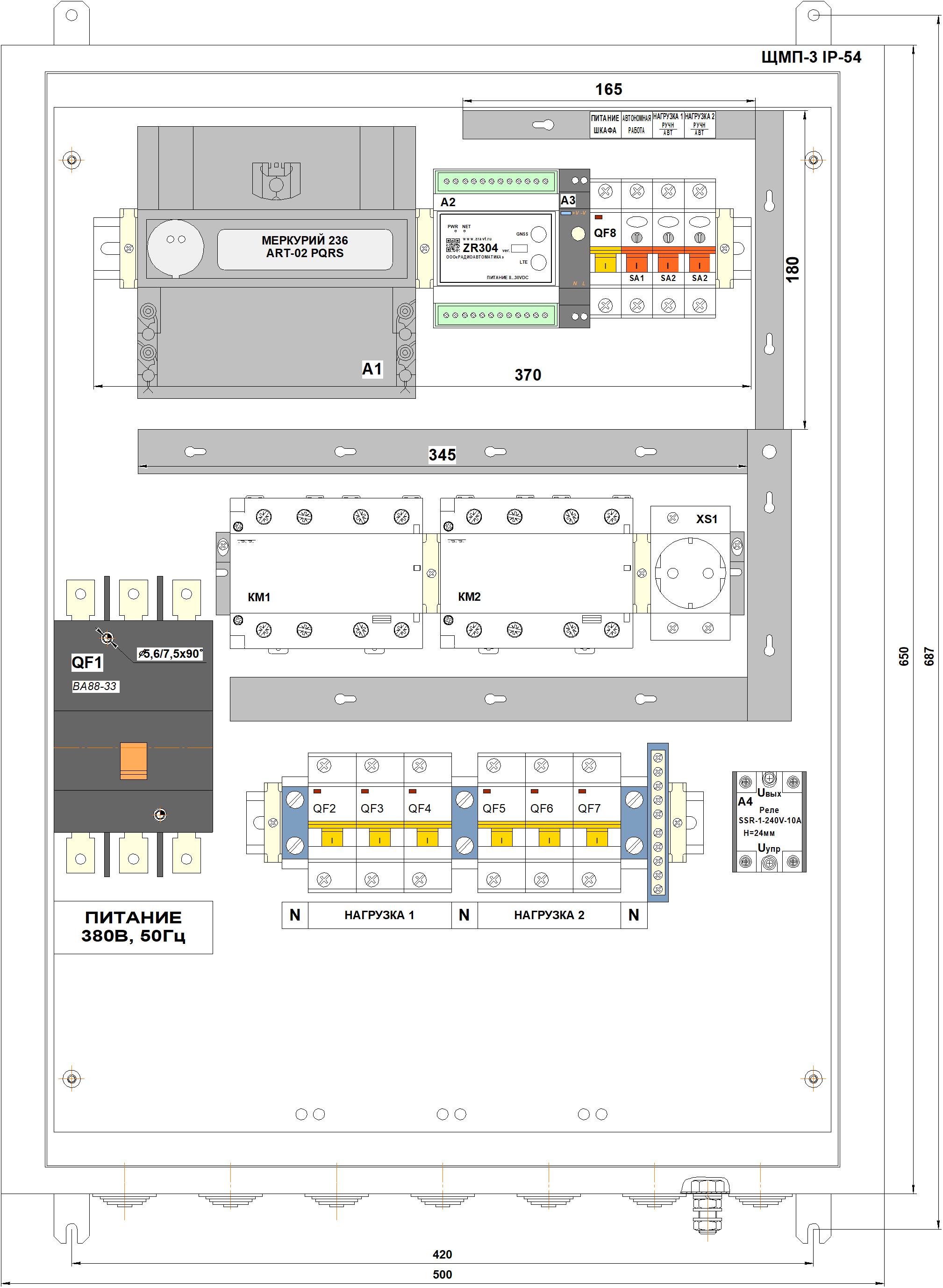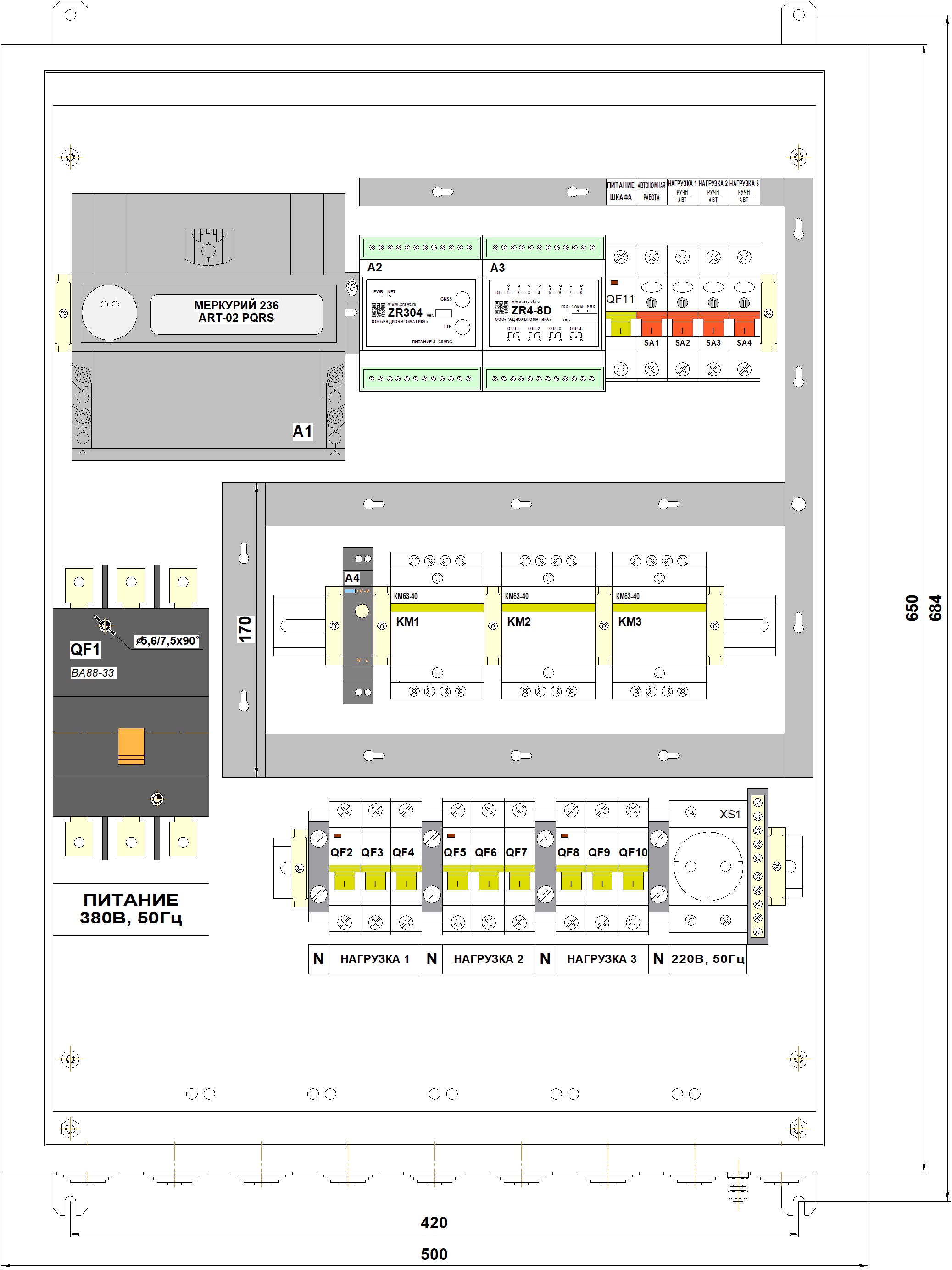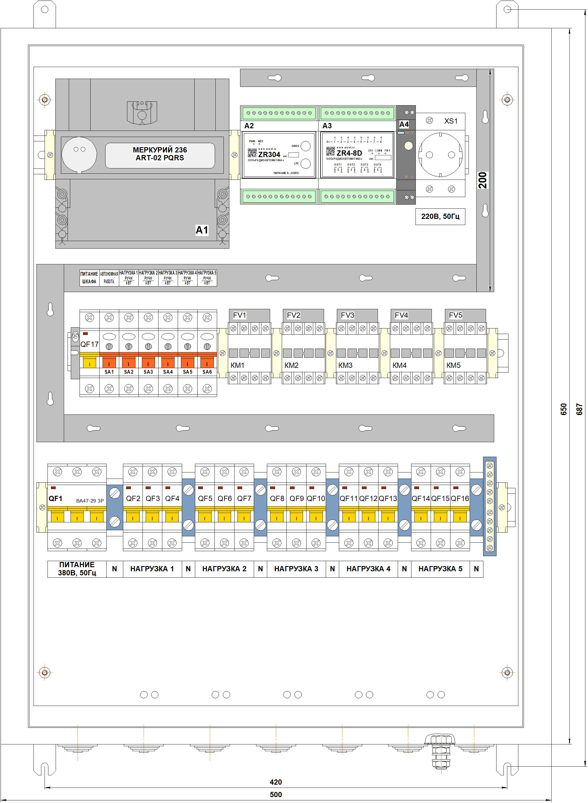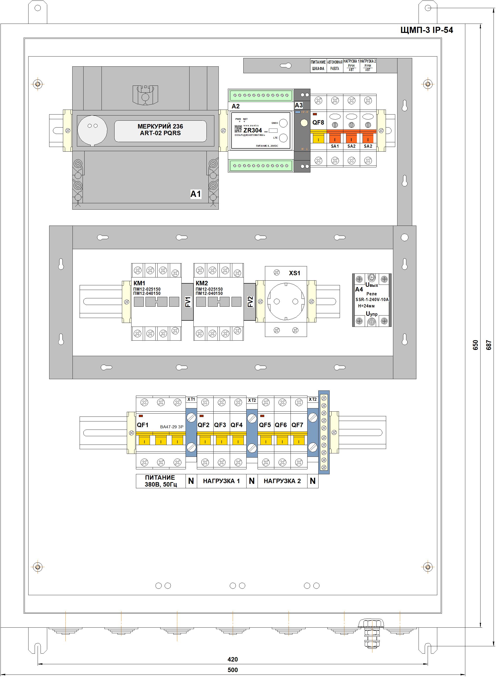 Трехфазные шкафы СПЕКТР (питание ~380В, 50Гц)